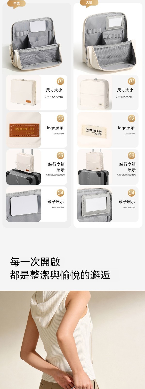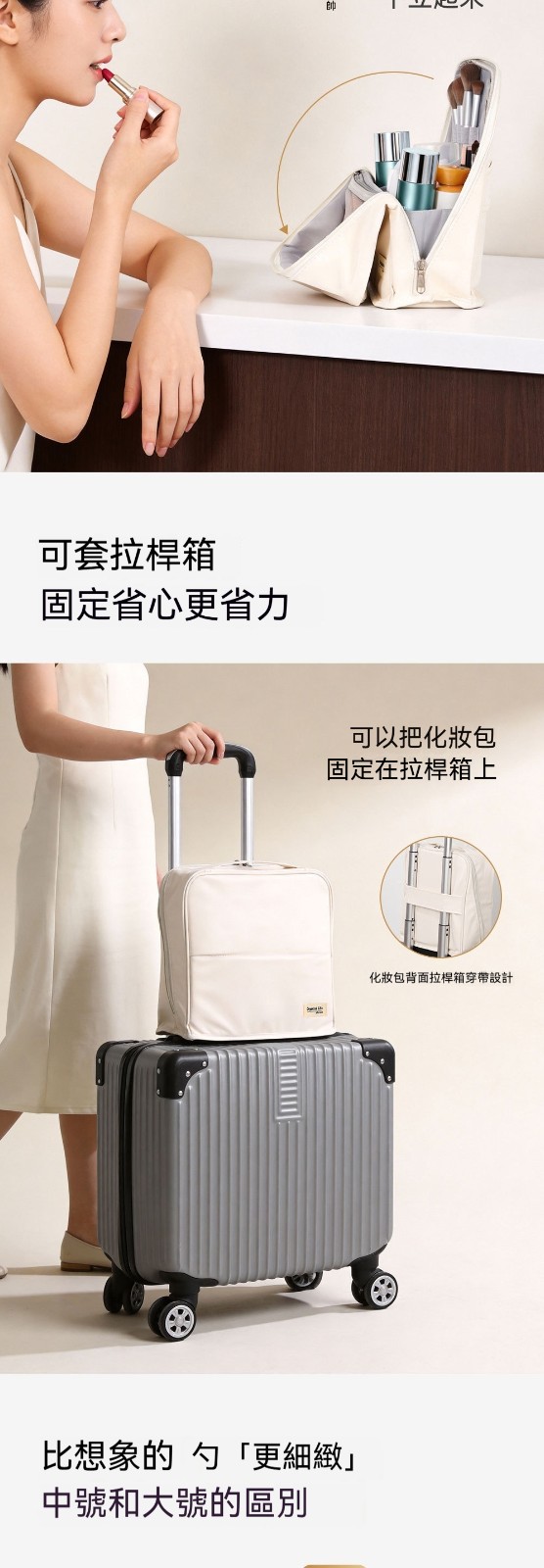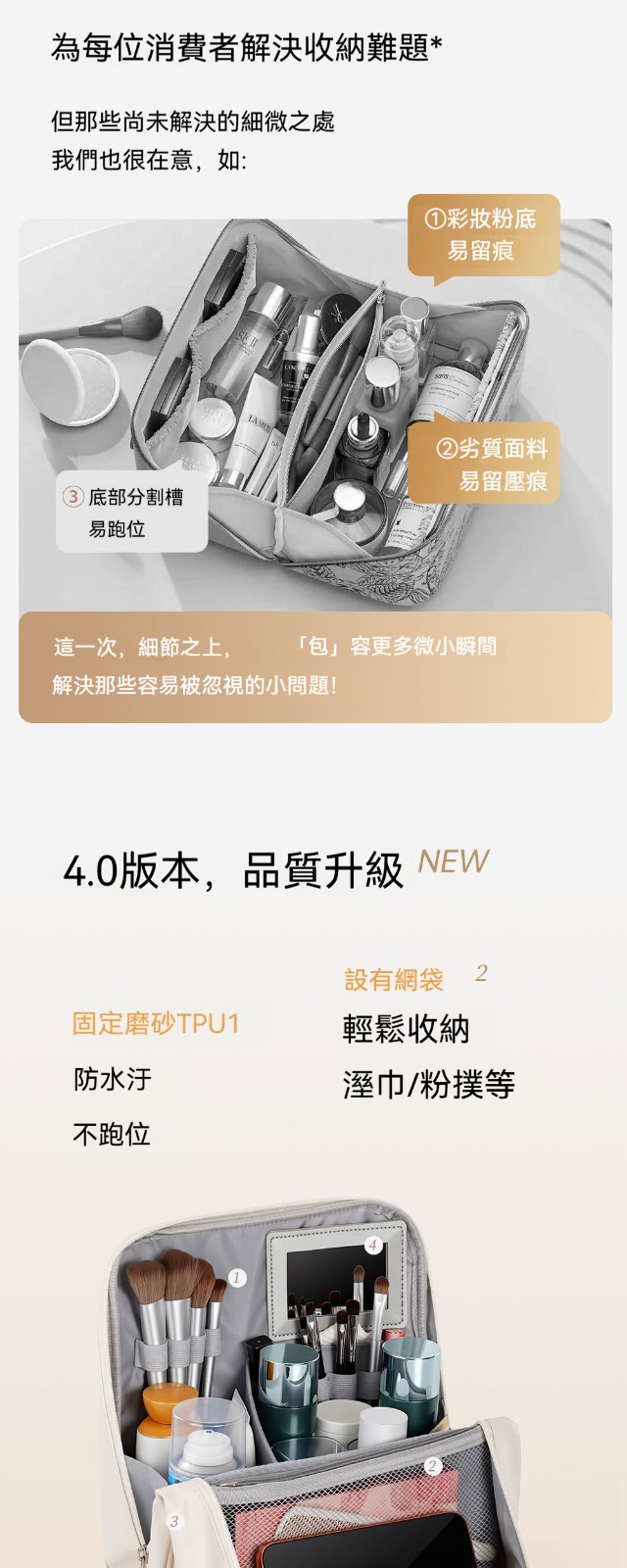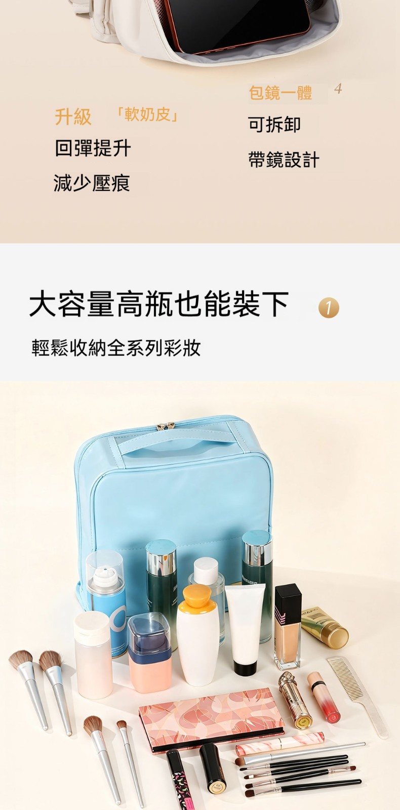 【化妝品終於不再亂糟糟!這款化妝包讓妳出門優雅從容】 4.0升級版立式化妝包|包鏡一體 × 防污易清潔 × 可掛拉桿箱