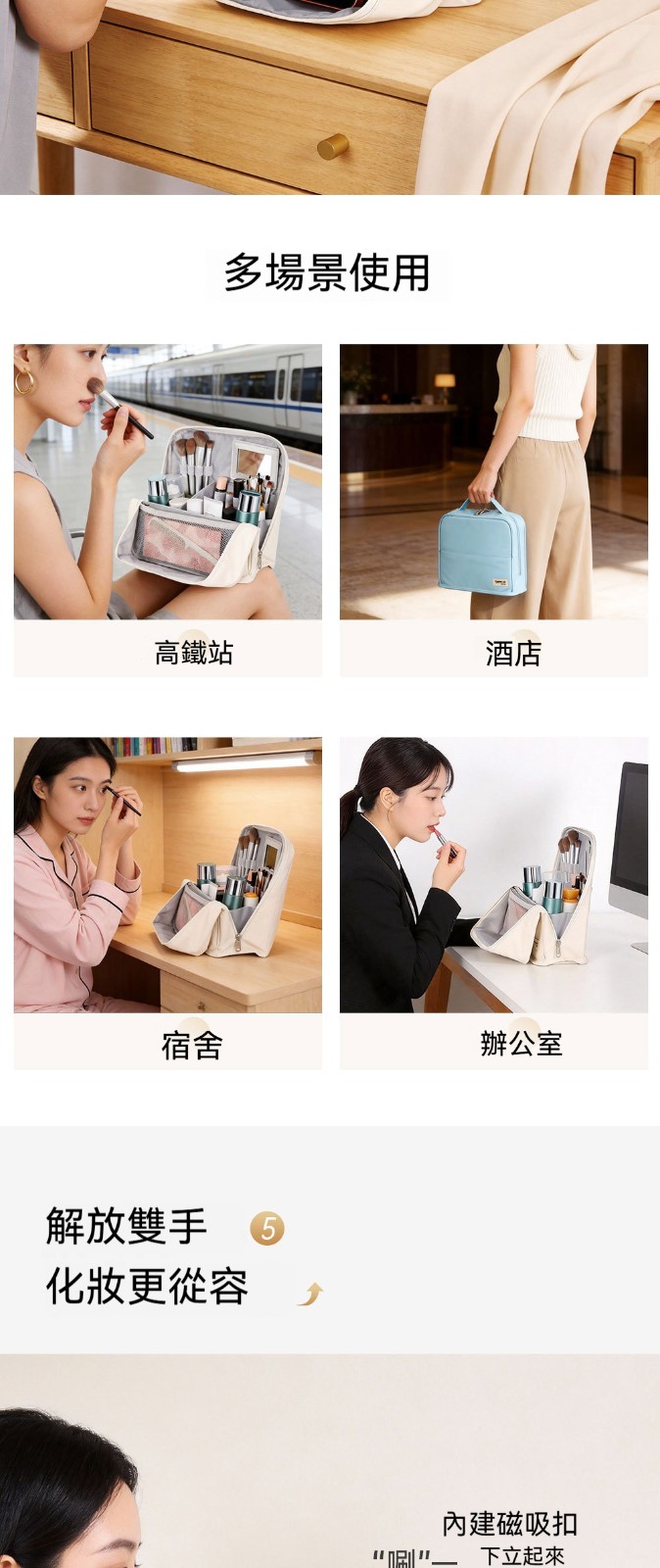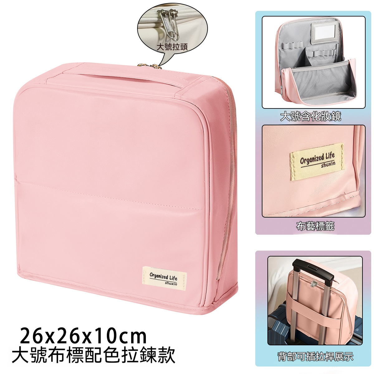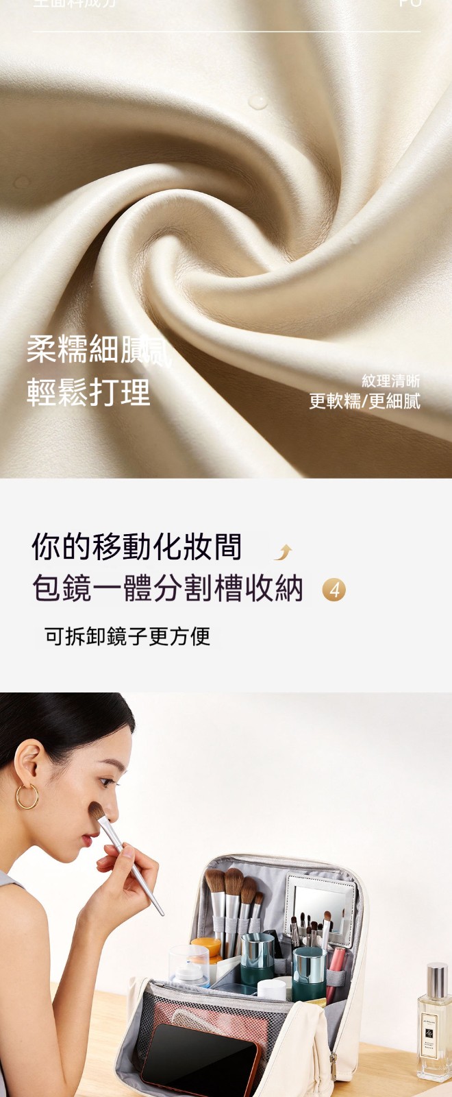 【化妝品終於不再亂糟糟!這款化妝包讓妳出門優雅從容】 4.0升級版立式化妝包|包鏡一體 × 防污易清潔 × 可掛拉桿箱